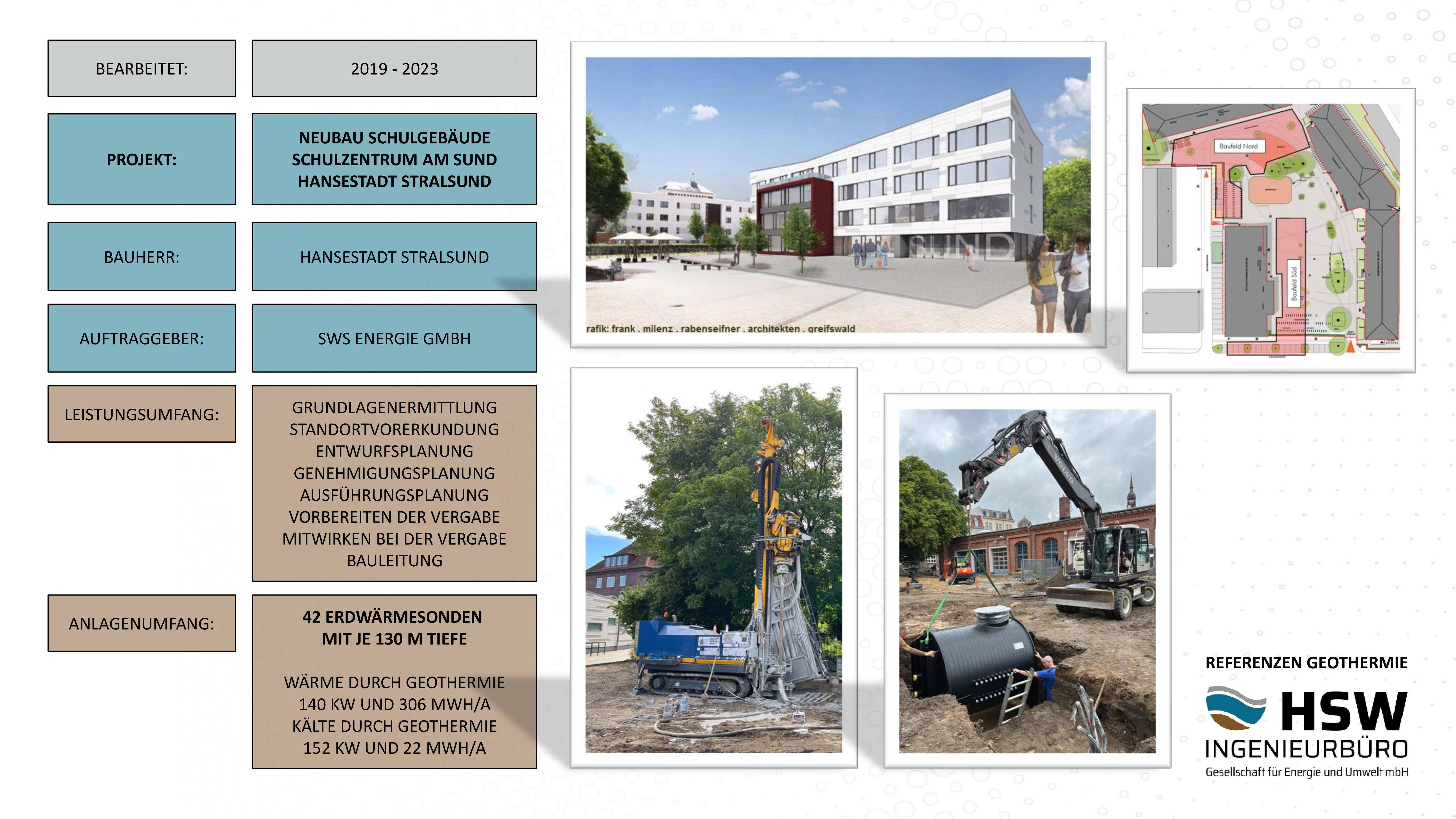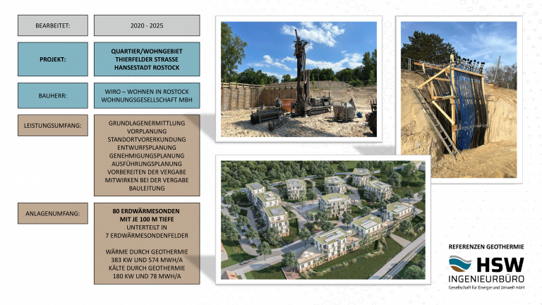 Die H.S.W. GmbH beschäftigt sich seit Ende der 1990iger Jahre allerdings vorrangig mit Projekten im Bereich der Oberflächennahen Geothermie